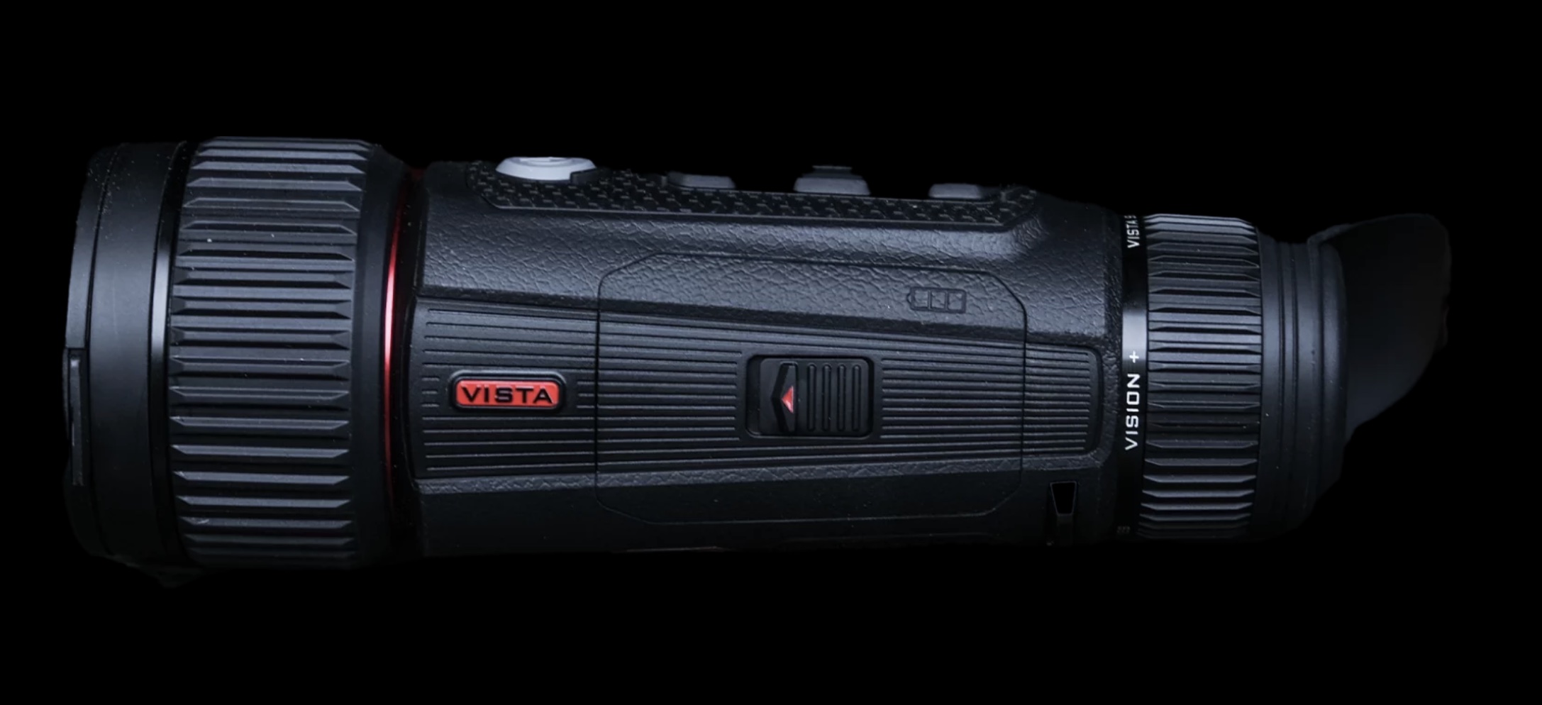 Die geräuschlose Bedienelemente des Vista ermöglichen eine diskrete Nutzung bei Dunkelheit, während die drehbare Augenmuschel das Eindringen von Licht blockiert. Die vollständig umhüllte TPU-Kunstlederstruktur sorgt für einen angenehmen Griff und ermöglicht müheloses, längeres Beobachten.