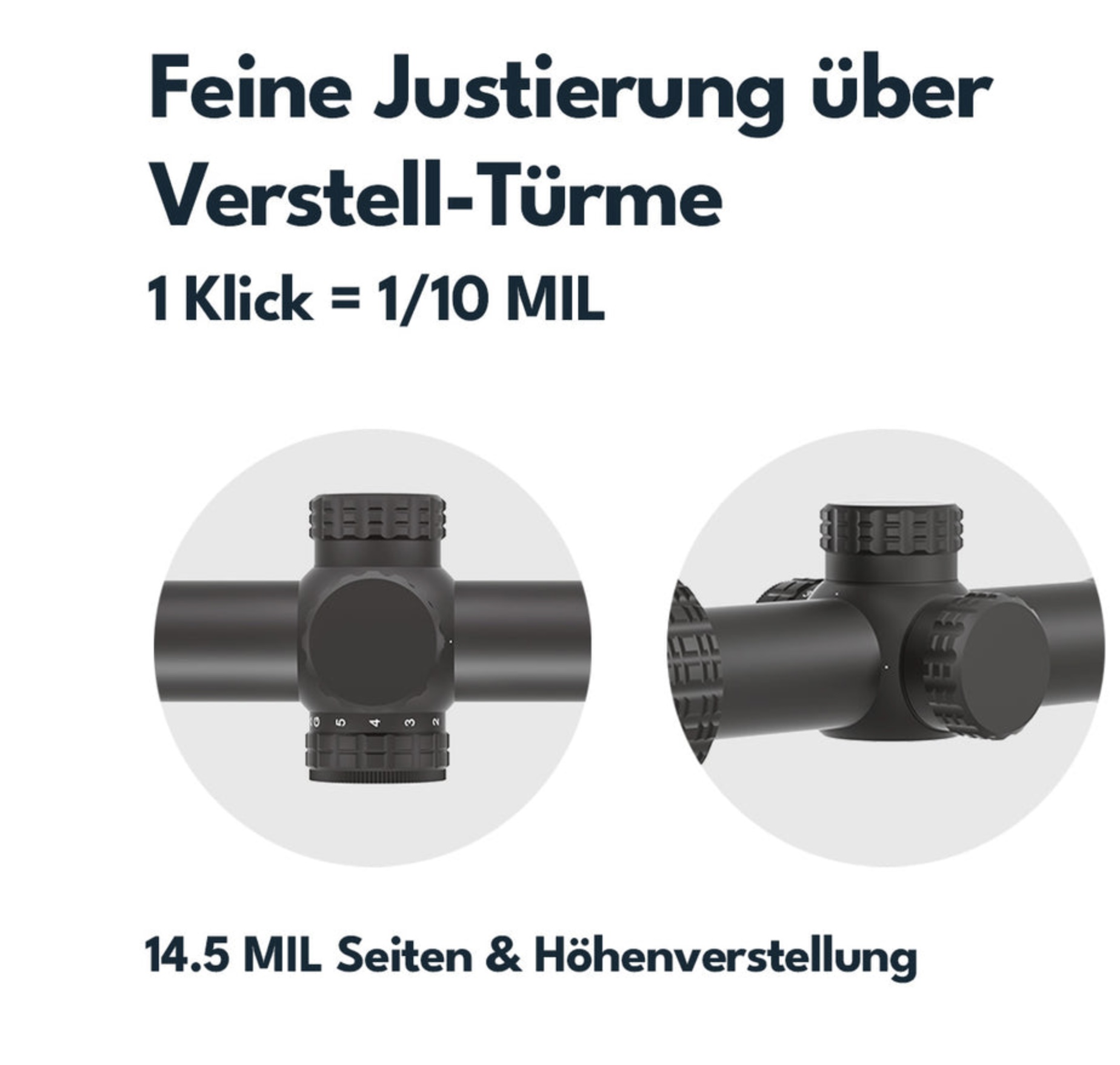 - Absehen in Rot und Grün beleuchtbar, jeweils 5 Helligkeitsstufen