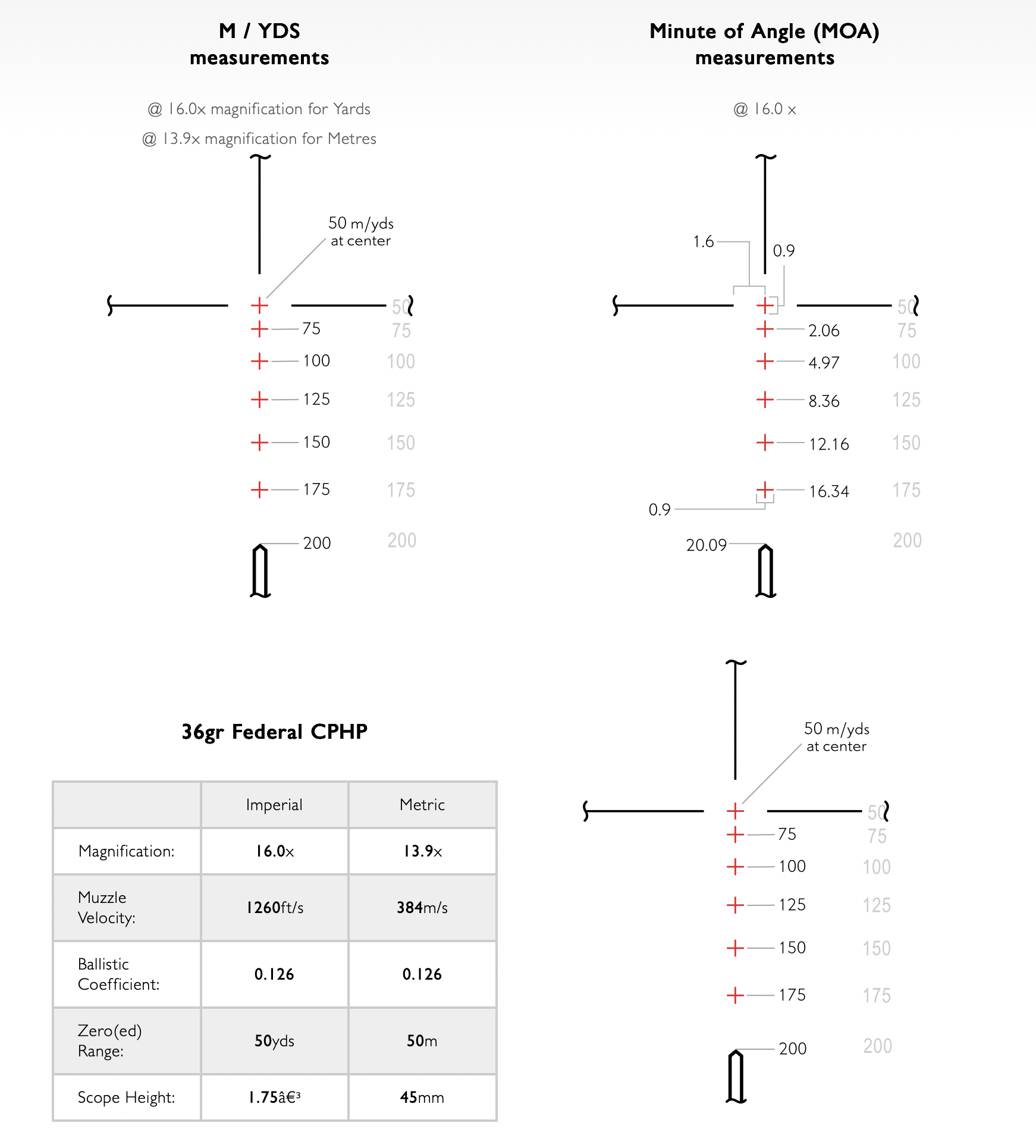 • Verstellwert pro Klick 1 ⁄ 4 MOA