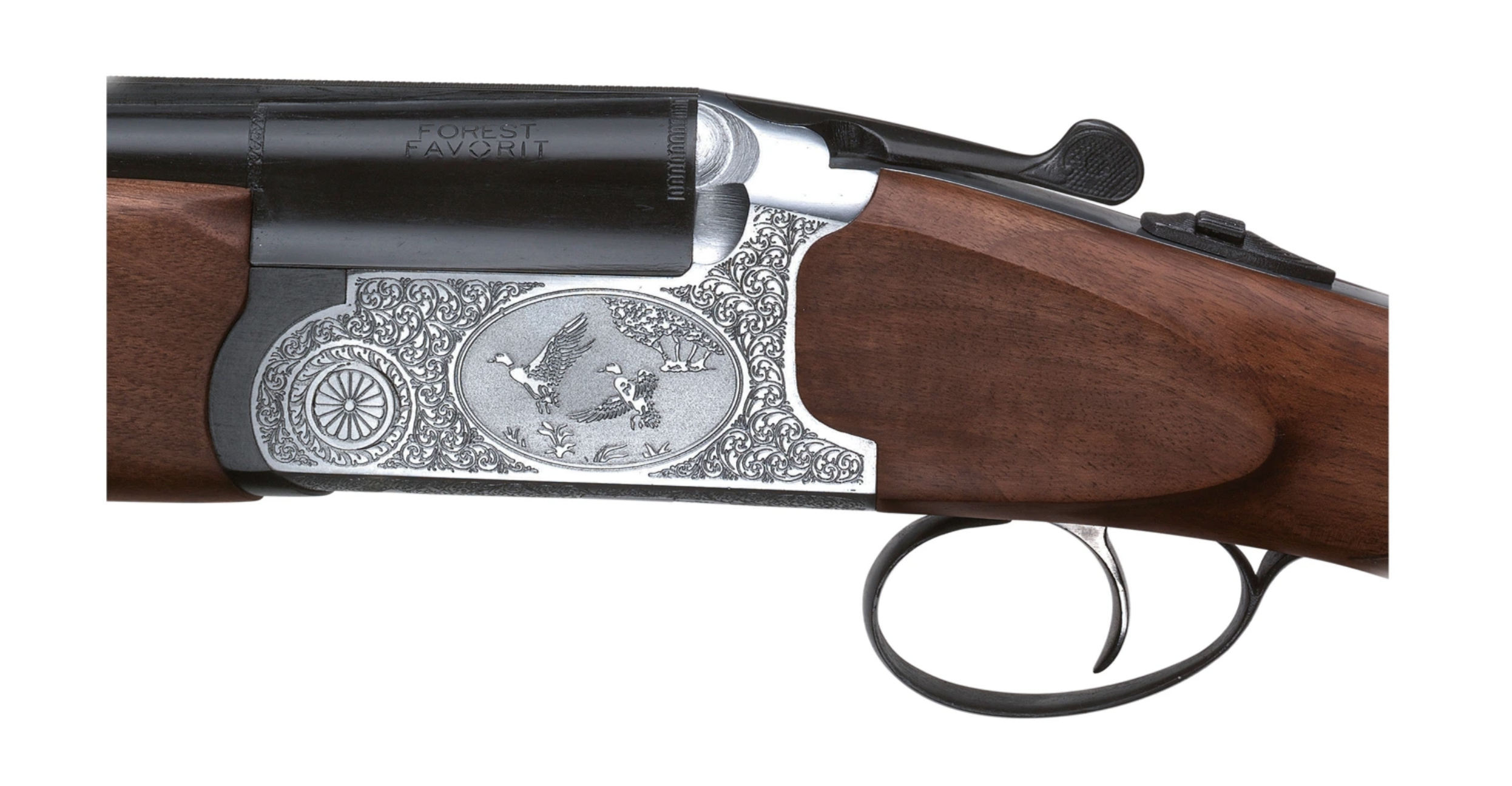 Das Kaliber 12/76 mit Stahlschrotbeschuss lässt bei Bedarf starke Schrot Vorlagen zu, was gerade bei der Gänsejagd von Vorteil sein kann. Selbstverständlich lassen sich auch alle 70er Patronen in diesem Kaliber verschießen. Bockdoppelflinten sind sowohl im jagdlichen als auch im sportlichen Schießen universell einsetzbar und allgemein einfacher zu bedienen als Querflinten. Mit der Bockdoppelflinte Forest Favorit sind hohe Schusskadenzen ohne Beeinträchtigung der Trefferbilder und ohne Nachteile für den Schützen möglich – der Vorderschaft umschließt hierbei den unteren Lauf. Die Hand greift nicht direkt auf das heiße Metall wie bei einer Querflinte.