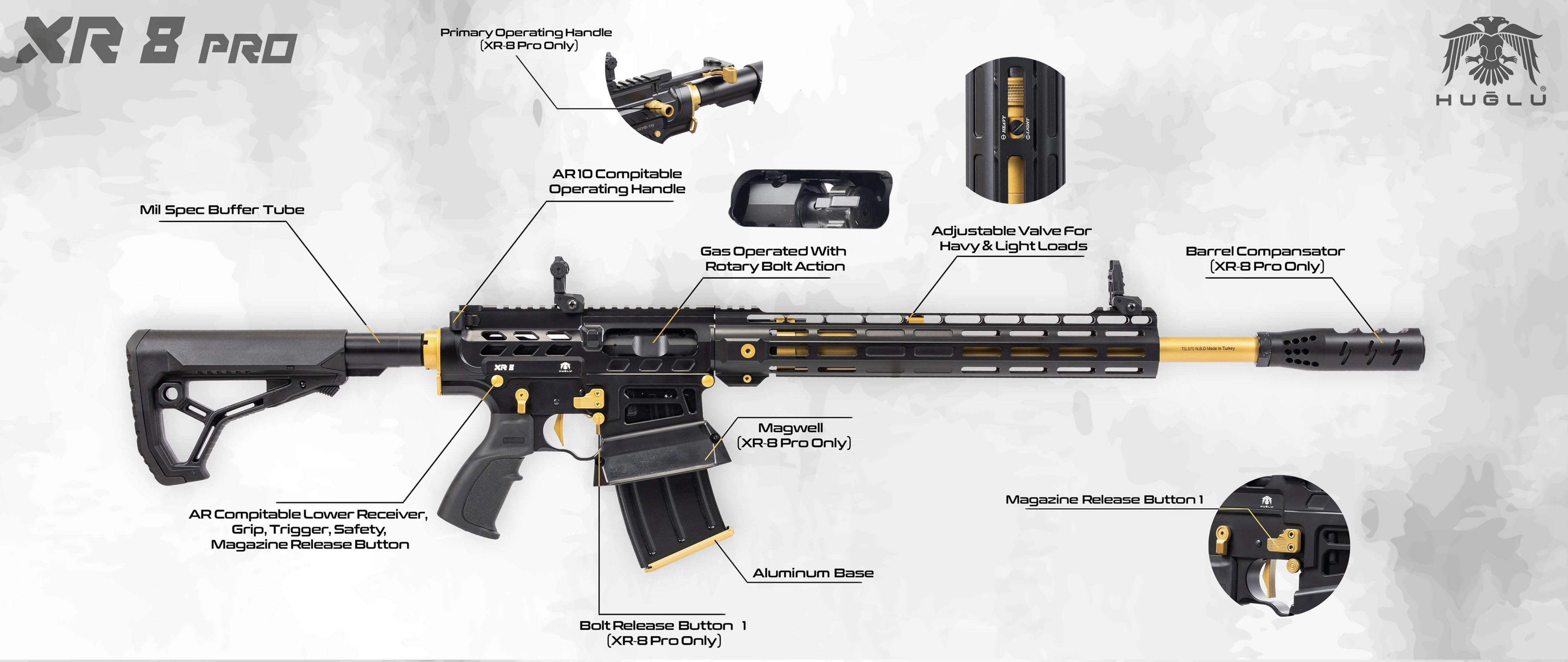 Huglu XR-8 Pro Selbstladeflinte im Kaliber 12/76 47cm Lauf in Schwarz/Orange mit 5 Chokes & Kommentator