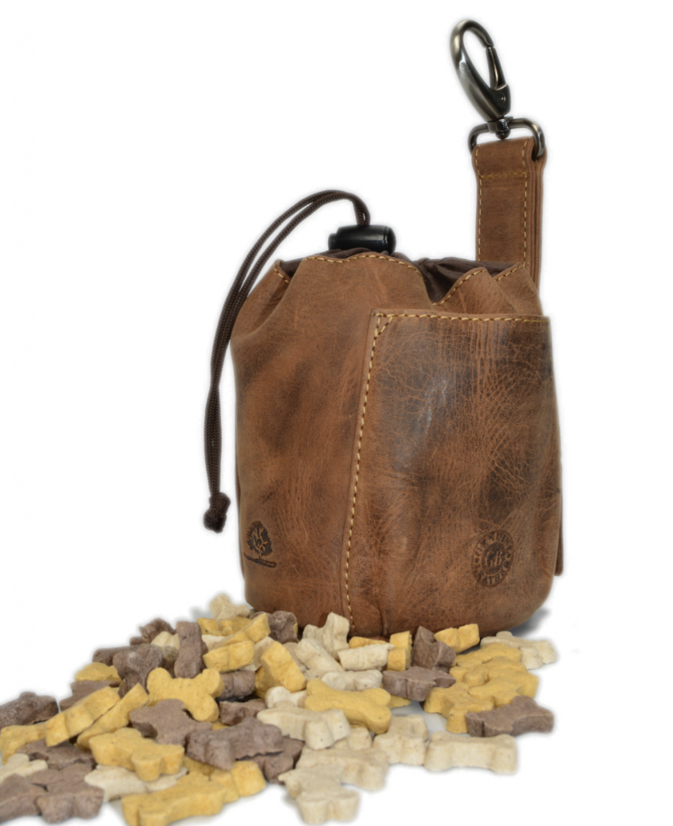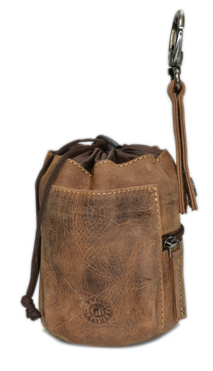 - Futterbeutel aus naturbelassenem Rindleder, braun