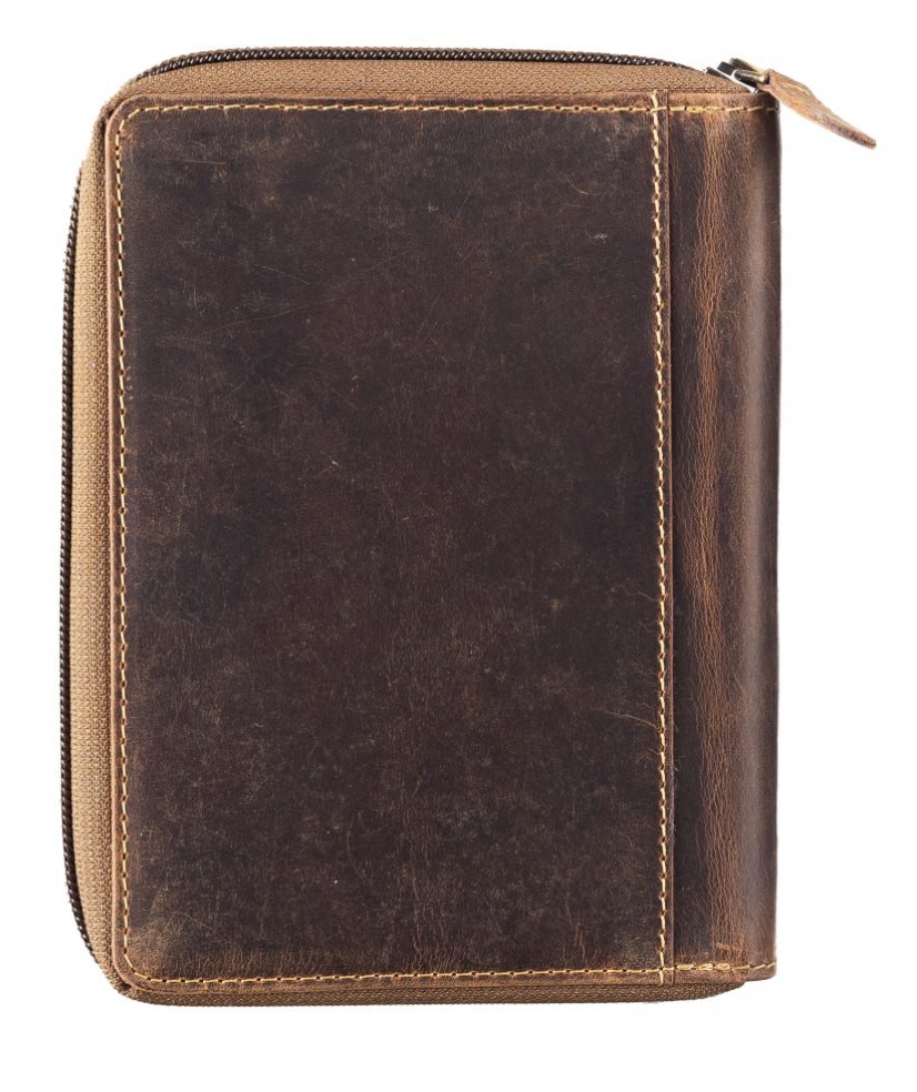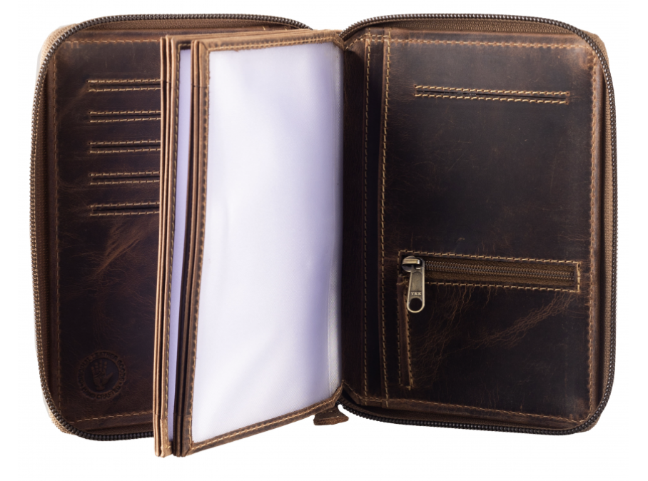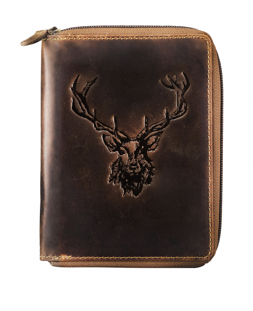 - Vintage-Leder Ausweismappe mit Reißverschluss Hirschkopf-Motiv, braun, unisex